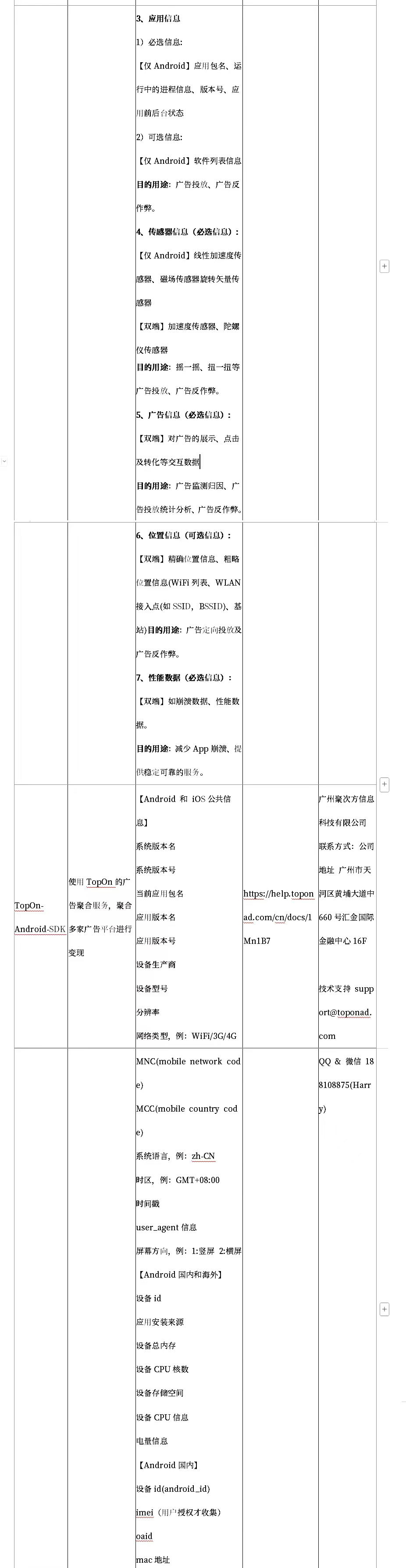 4.2.1 設(shè)備屬性信息說(shuō)明 (例如設(shè)備型號(hào)、設(shè)備標(biāo)識(shí)符 (如IMEI AndroidID/IDEA OPENUDID/GUID/OAID)、設(shè)備MAC地址、電信運(yùn)營(yíng)商等軟硬件特征信息)