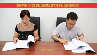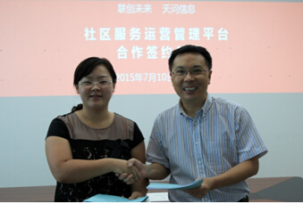 2015年7月10日上午,四川聯(lián)創(chuàng)未來商務服務有限公司與成都天問信息技術有限公司正式達成對“社區(qū)服務運營管理平臺開發(fā)及運營”(以下簡稱平臺)的深度戰(zhàn)略合作協(xié)議。標志著平臺建設正式步入實施階段。