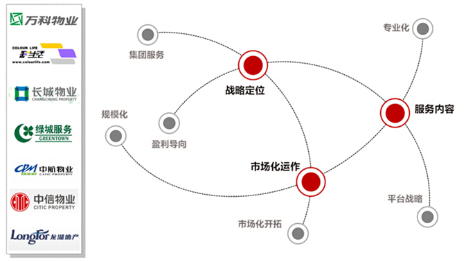 通過(guò)系列標(biāo)桿企業(yè)案例研究,我們發(fā)現(xiàn),新模式下物管要想有所作為,必須圍繞戰(zhàn)略、市場(chǎng)化、服務(wù)內(nèi)容等方面進(jìn)行思考。