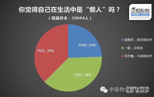 在騰訊科技《企鵝智酷》近期開(kāi)展了一項(xiàng)覆蓋19694名網(wǎng)友的調(diào)查,其中只有24%的用戶認(rèn)為自己是勤快人,不愛(ài)做家務(wù)或者對(duì)于家務(wù)活拖沓的用戶占據(jù)76%。